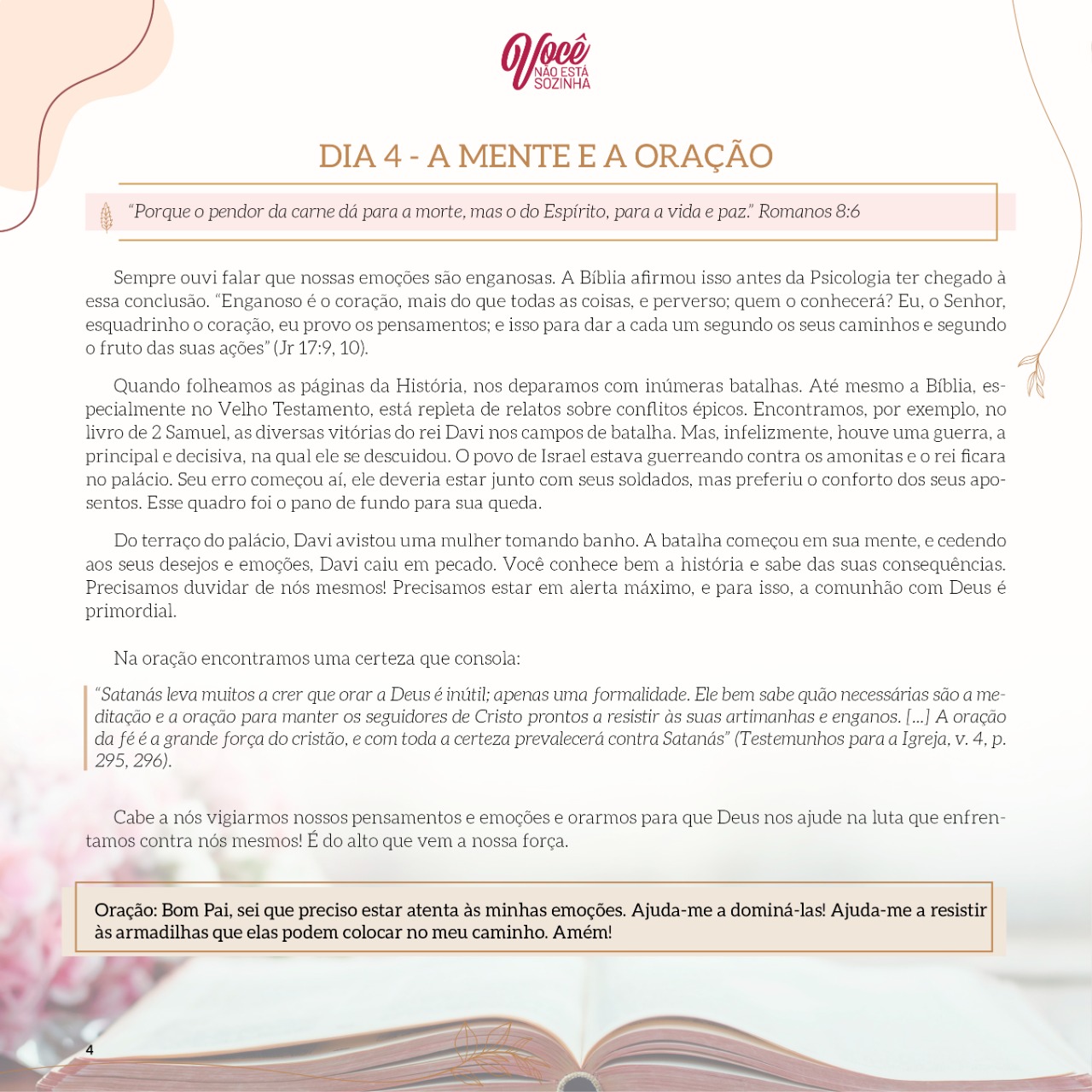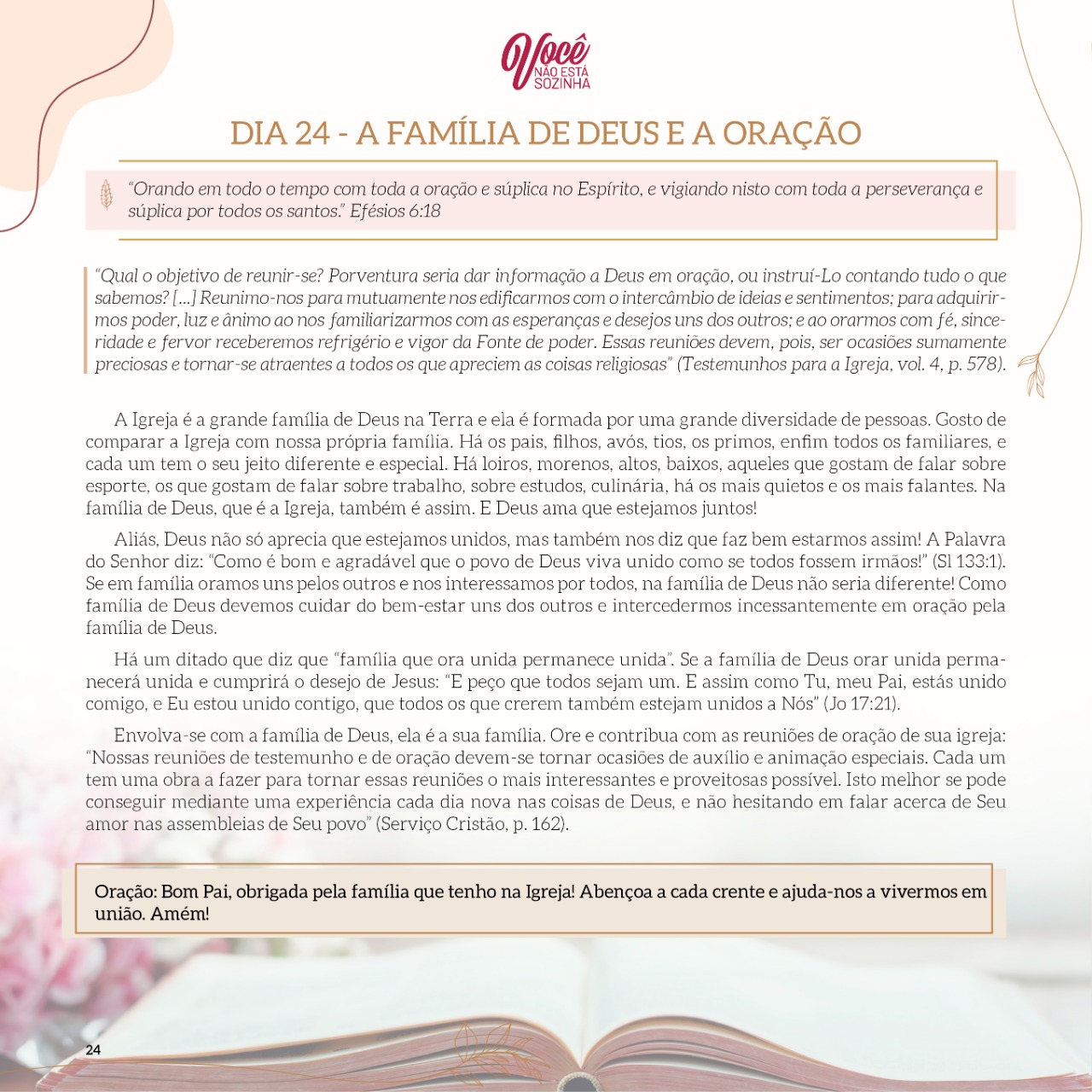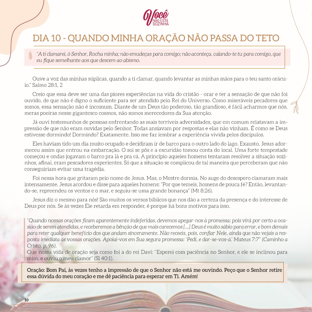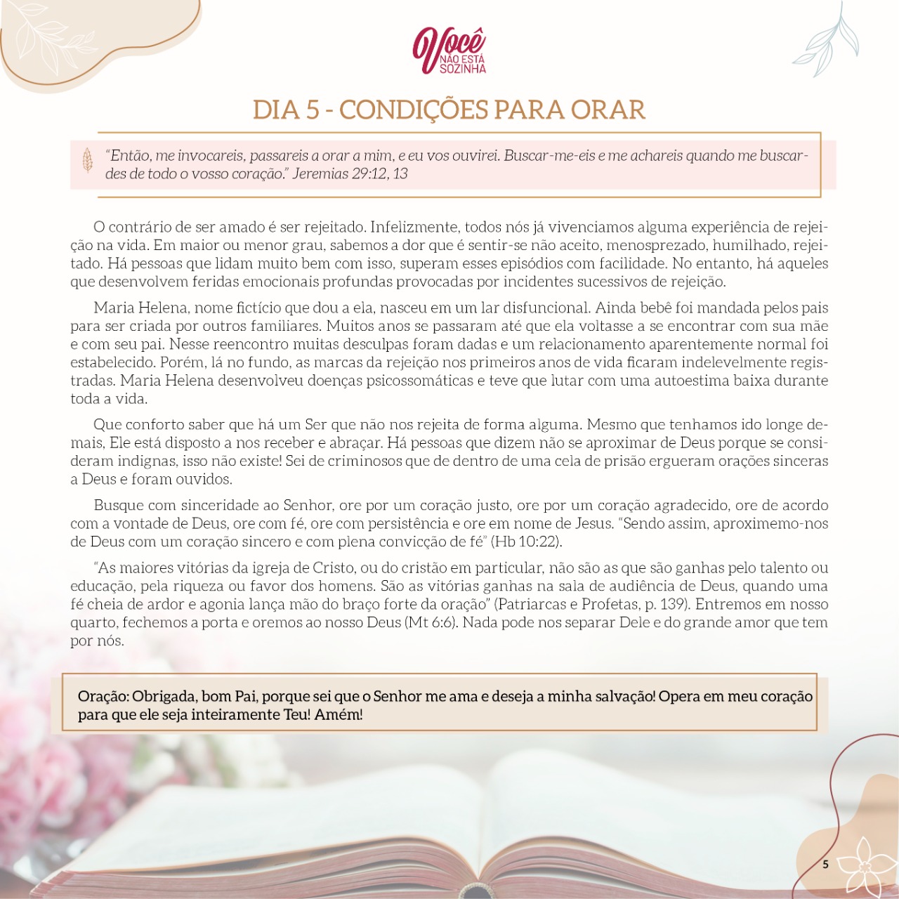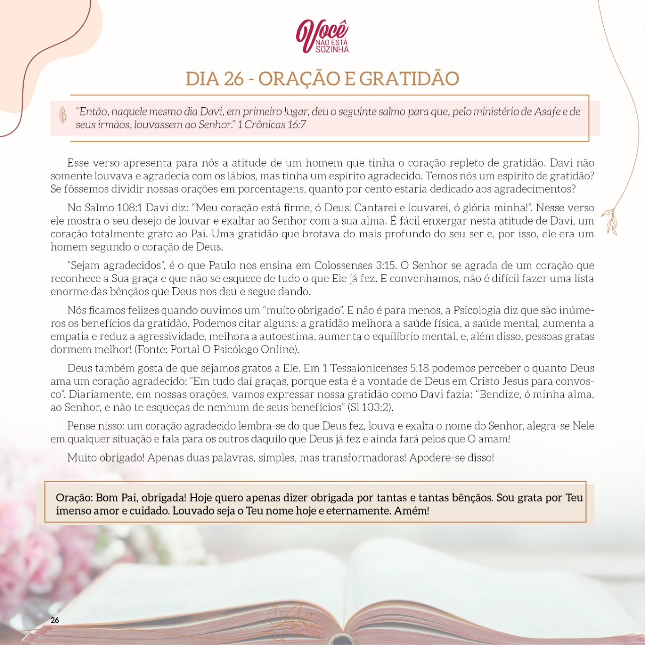 Por isso, preparamos uma Jornada Espiritual de 30 dias, que tem como título “Você não está sozinha”.