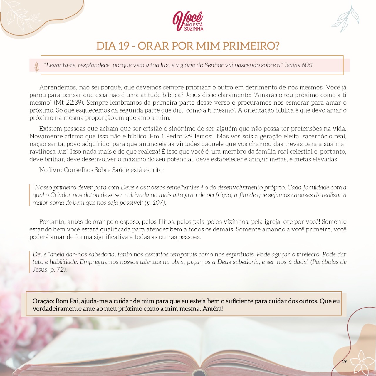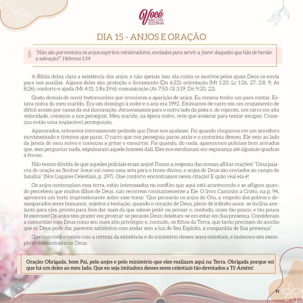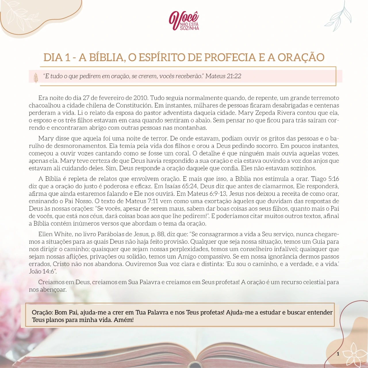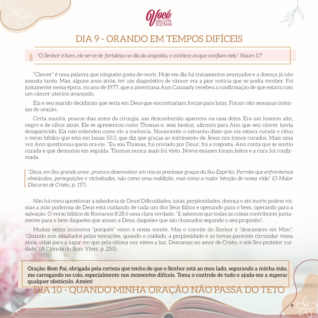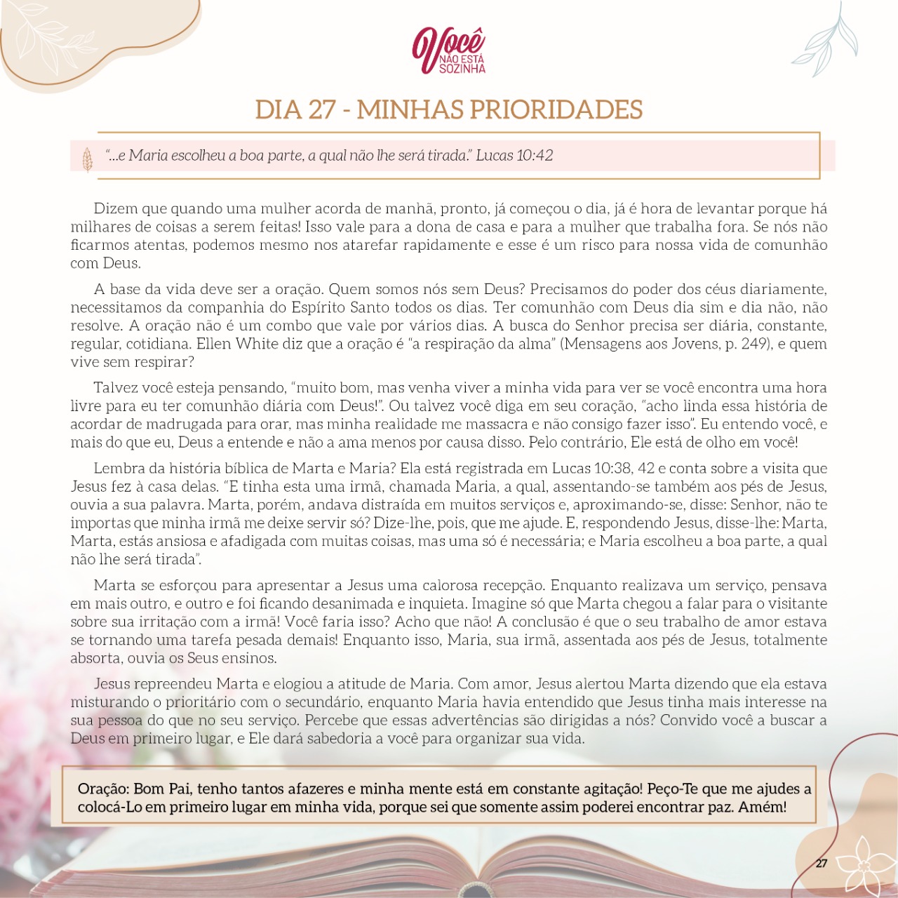 Por isso, preparamos uma Jornada Espiritual de 30 dias, que tem como título “Você não está sozinha”.