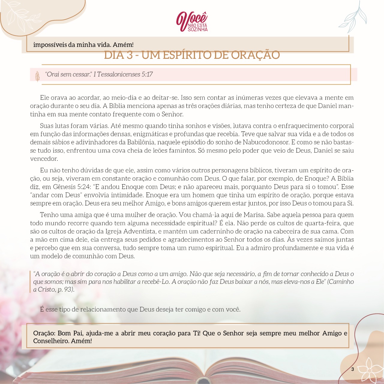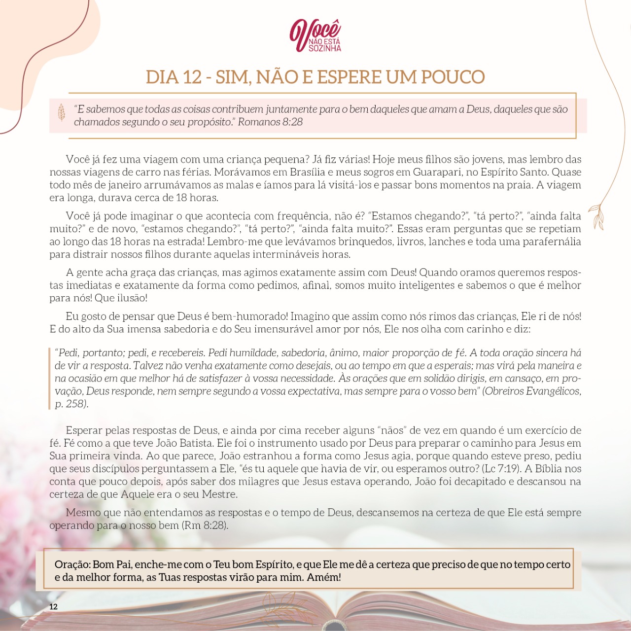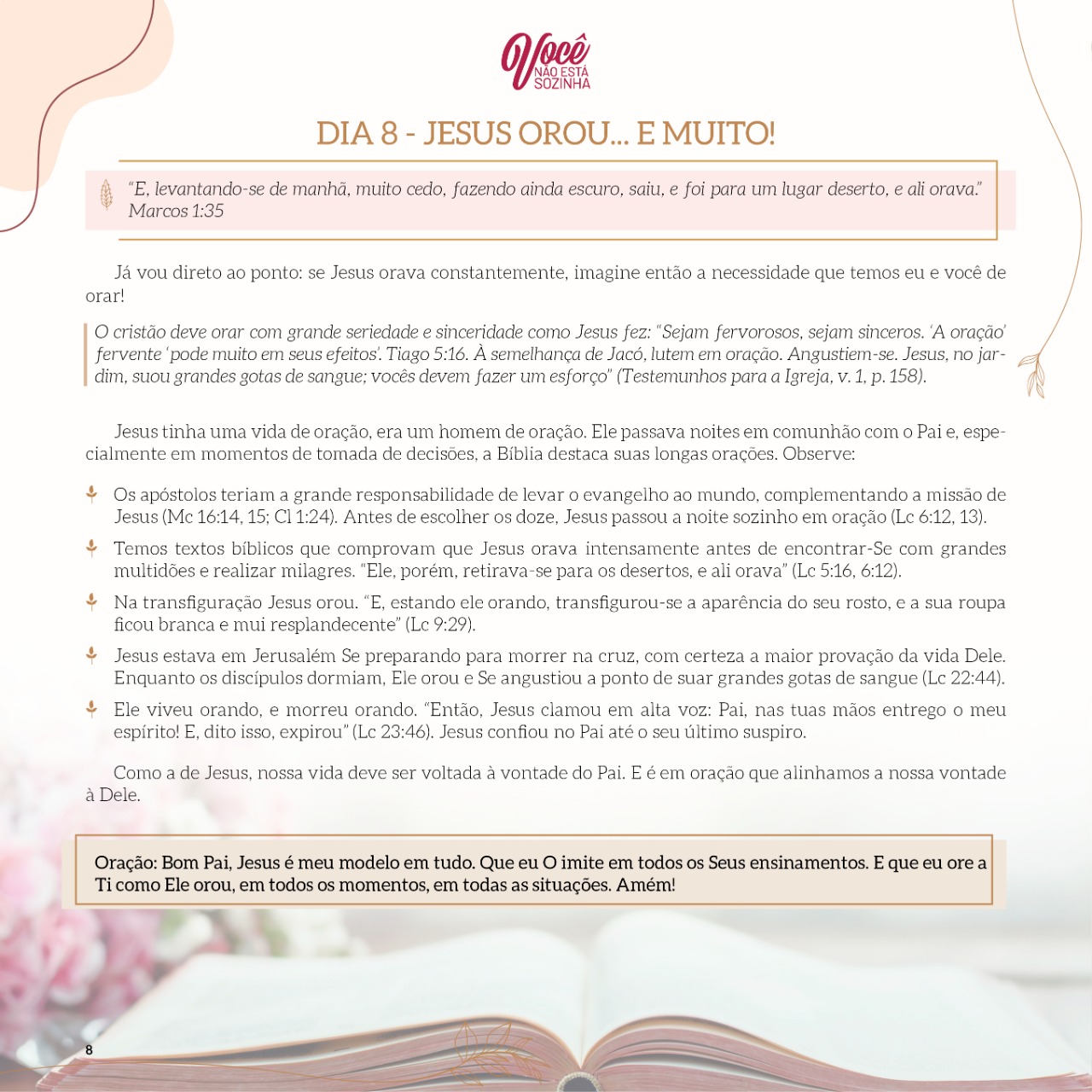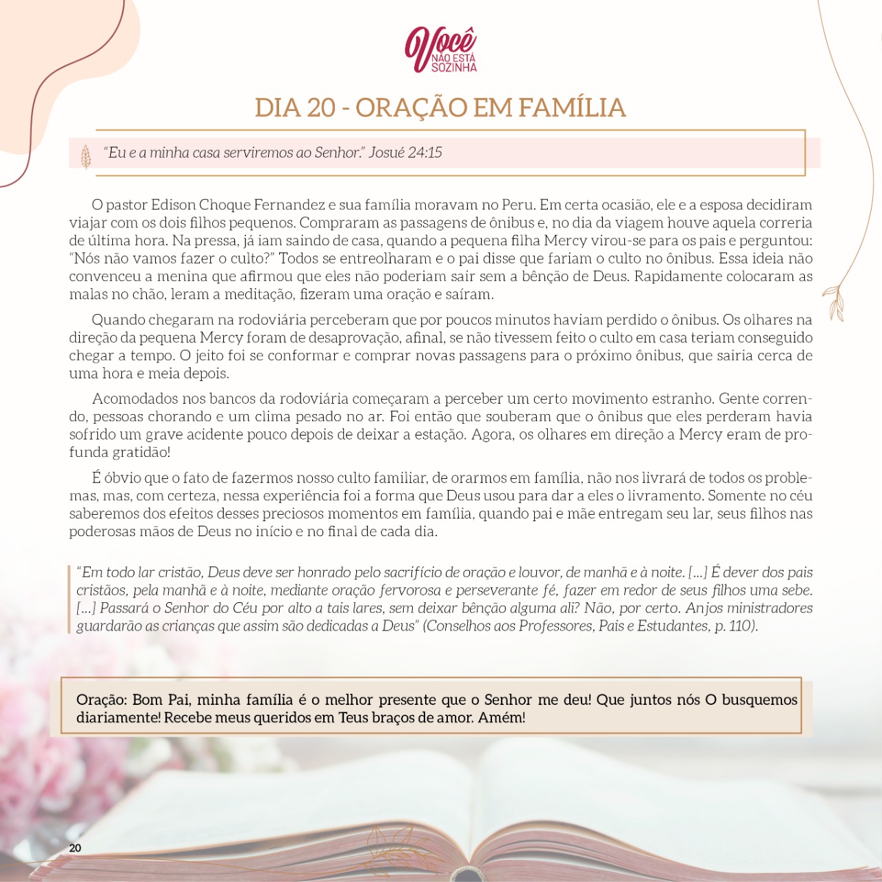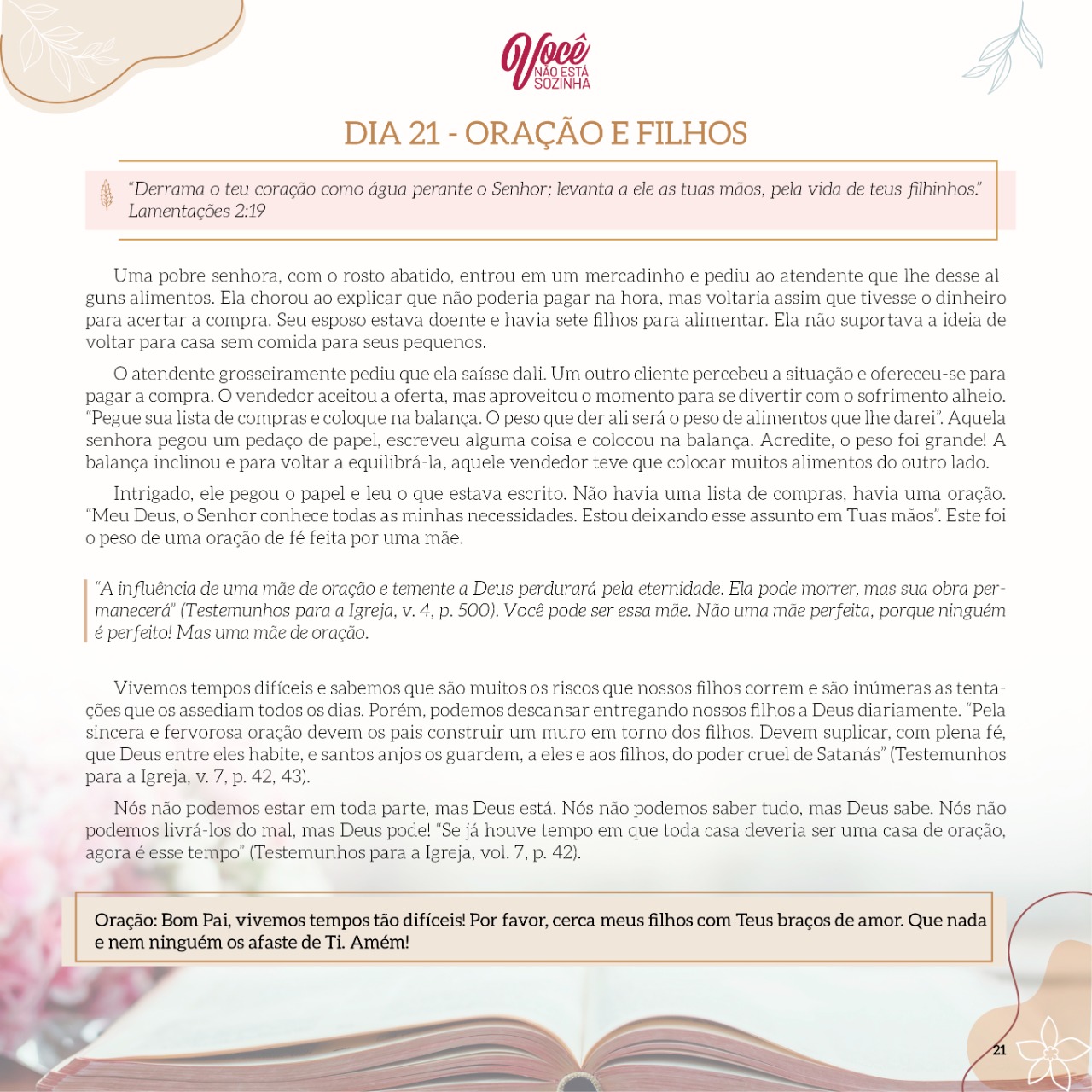Por isso, preparamos uma Jornada Espiritual de 30 dias, que tem como título “Você não está sozinha”.