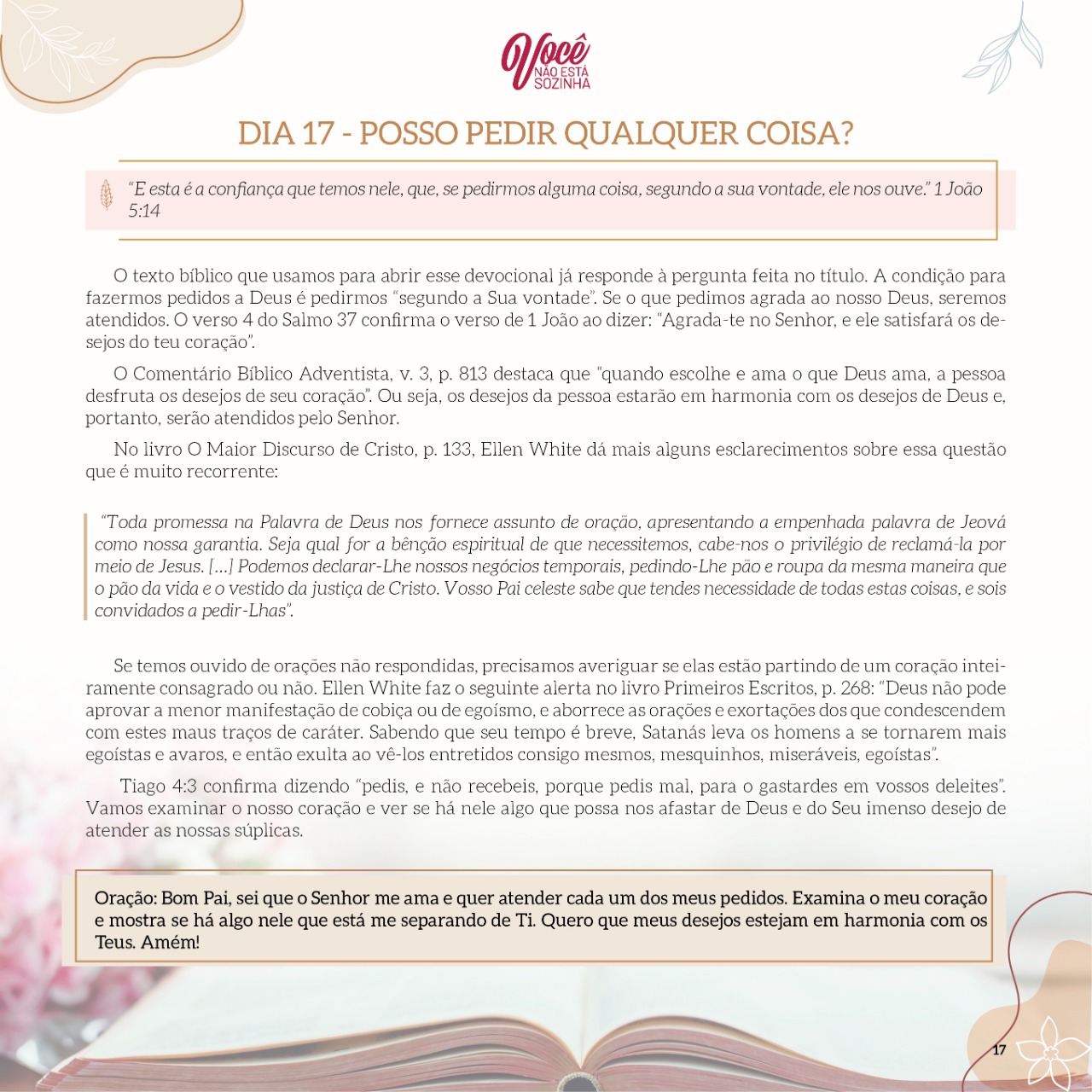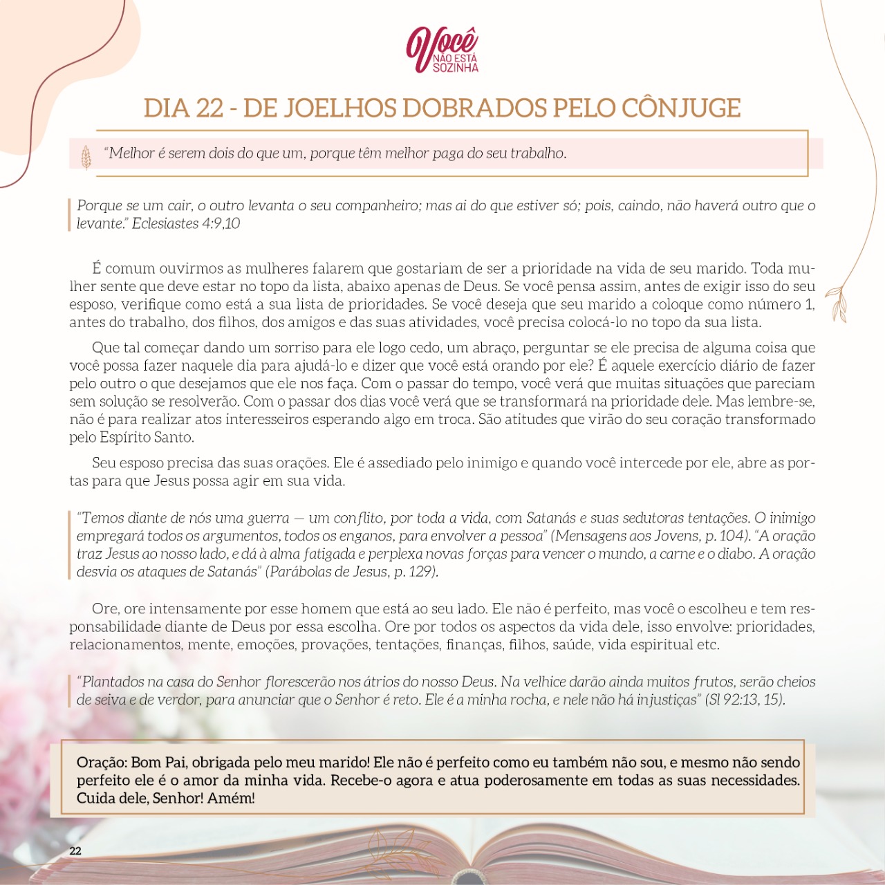 Não existe nada mais importante na vida de uma mulher do que desenvolver a sua comunhão diária com Deus. Sabendo disso, o Ministério da Mulher quer ajudar você a começar o ano de 2022 da melhor forma possível, colocando Deus em primeiro lugar em sua vida.